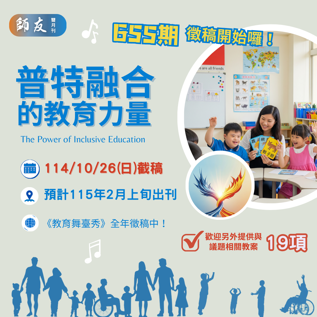 655期「普特融合的教育力量」即日起至114年10月26日(日)前截稿(預計於115年2月上旬出刊!)