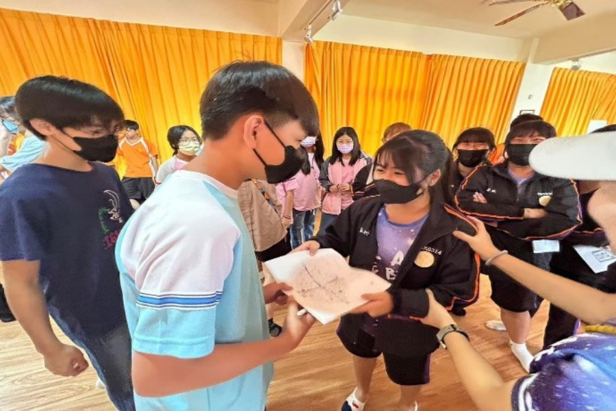 此外,本校將SEL課程與綜合活動學習領域結合,其中領綱的核心目標「促進自我發展」和「實踐社會參與」,非常適合融入社會情緒學習。112學年度下學期,我們嘗試了校際合作,邀請酷凌(Cooling Conflict)計畫主持人鳳山國中教師沈邑蓎與本校表藝教師一起跨校共備,由兩校學生互動演出並分享示範 (如圖2)。酷凌計畫分為五個部分:演一遍、思想軌跡、坐針氈、論壇、退出戰場。透過戲劇和觀眾互動的方式,帶領學生明瞭霸凌事件的不同面向。經過戲劇策略的操作,學生看到的不只是事情的表象,而許多學生透過「坐針氈」的段落,可以理解霸凌事件可能來自不同面向,也可能源自家庭系統支持與否。透過戲劇演出,讓觀眾上臺模擬戲劇過程,思考如何降低和解決霸凌衝突,希望藉由SEL的戲劇教育,養成孩子自我覺察、社會覺察及人際技巧來進行一場霸凌的拆解實驗。
