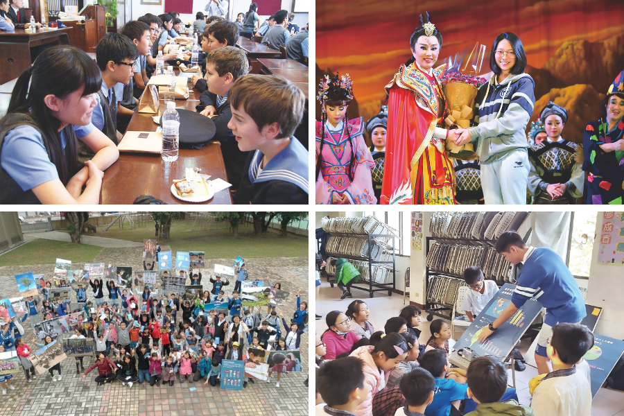 此一面向的主體是學生社團及社群所發起的服務學習團隊,從計畫研擬、成員招募、活動籌畫到資源募集,皆由學生主導。學校除了安排師長從旁協助,圖書館及家長會也提供「社會關懷基金」及「PTA之愛」等經費補助,引導學生以不同形式走向社區進行服務學習,體現生命教育的價值與能量。每年有近20個班級或團隊參與,投入人力超過500人,服務內容包含對偏遠地區學童的課後輔導、社區圖書館閱讀志工、社區長者關懷行動及暑期寒假的國小主題營隊(如圖4)。此外,在特定節日,學生也會帶著他們在社團的學習成果到社區進行各種演出,分享藝文之美。