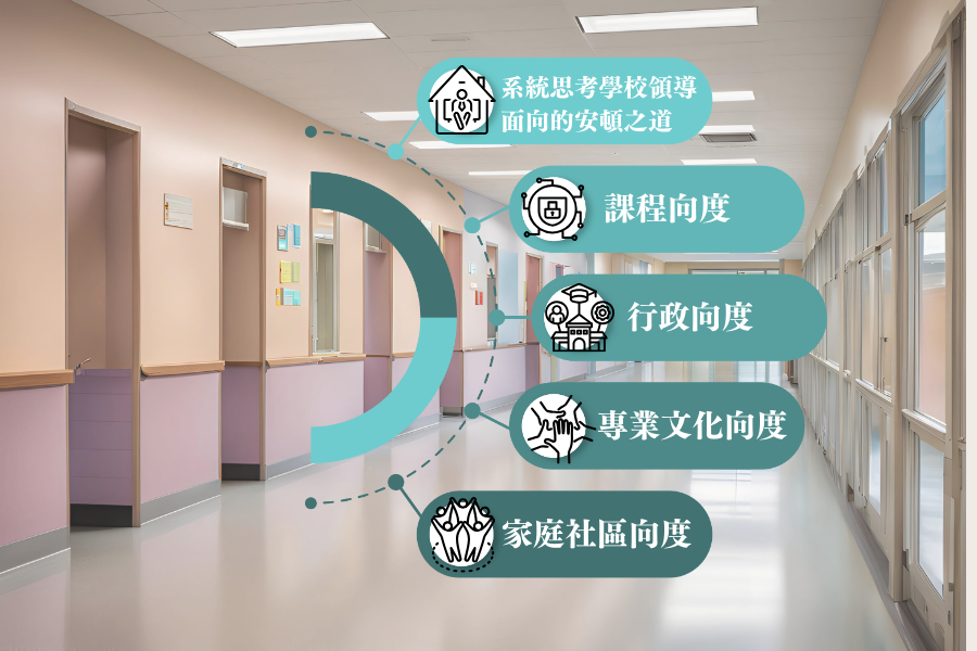 1. 建立學生及家庭支持網絡,強化親子溝通,在學校感受被關愛與支持而非責難與追究,與家長保持合作,陪伴孩子度過難關。
